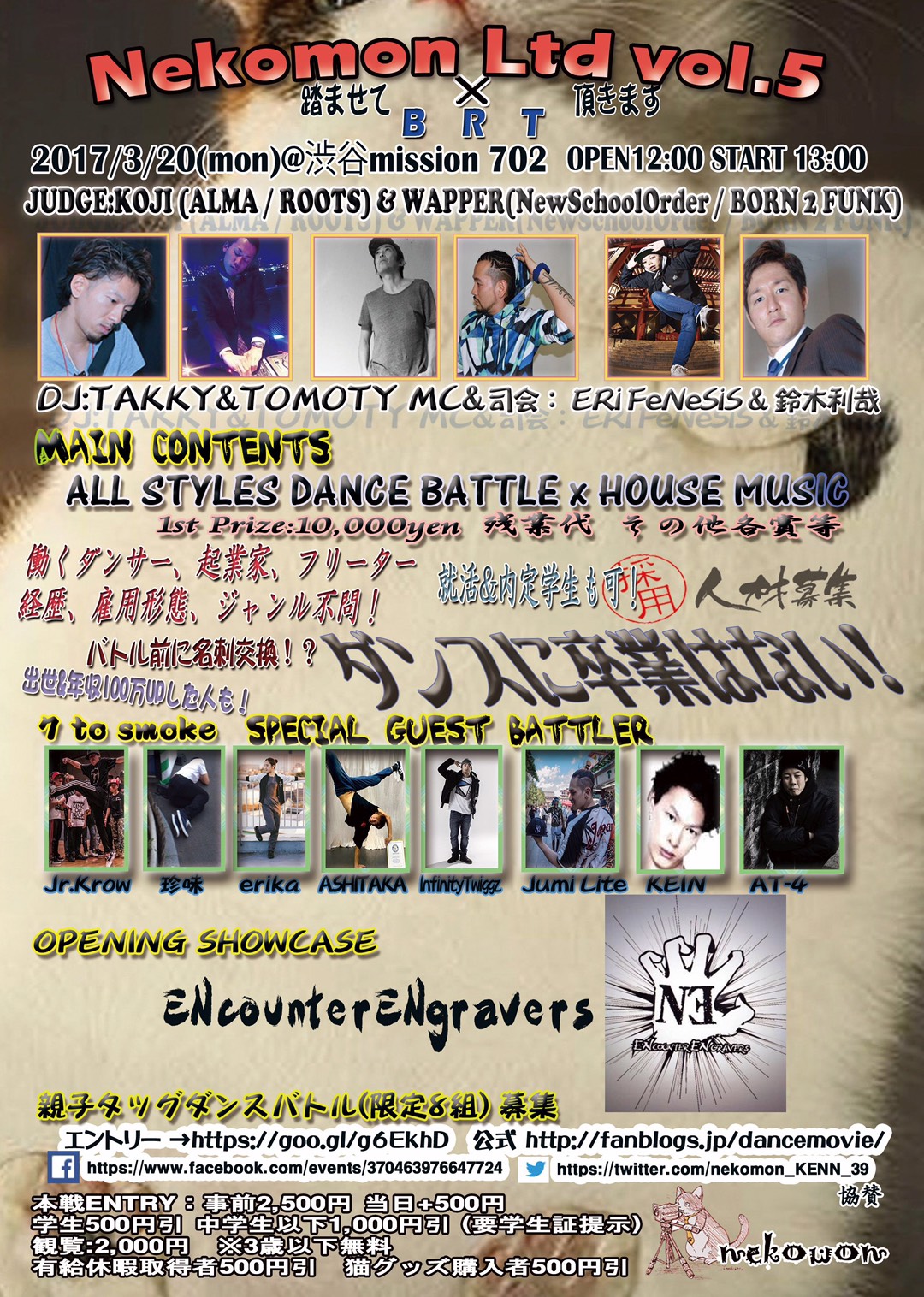 3/20渋谷mission、ジャッジは日本のハウスの父KOJIさん、フリースタイルの覇者WAPPERさん、間違いないキャスティングでお待ちしてます。
